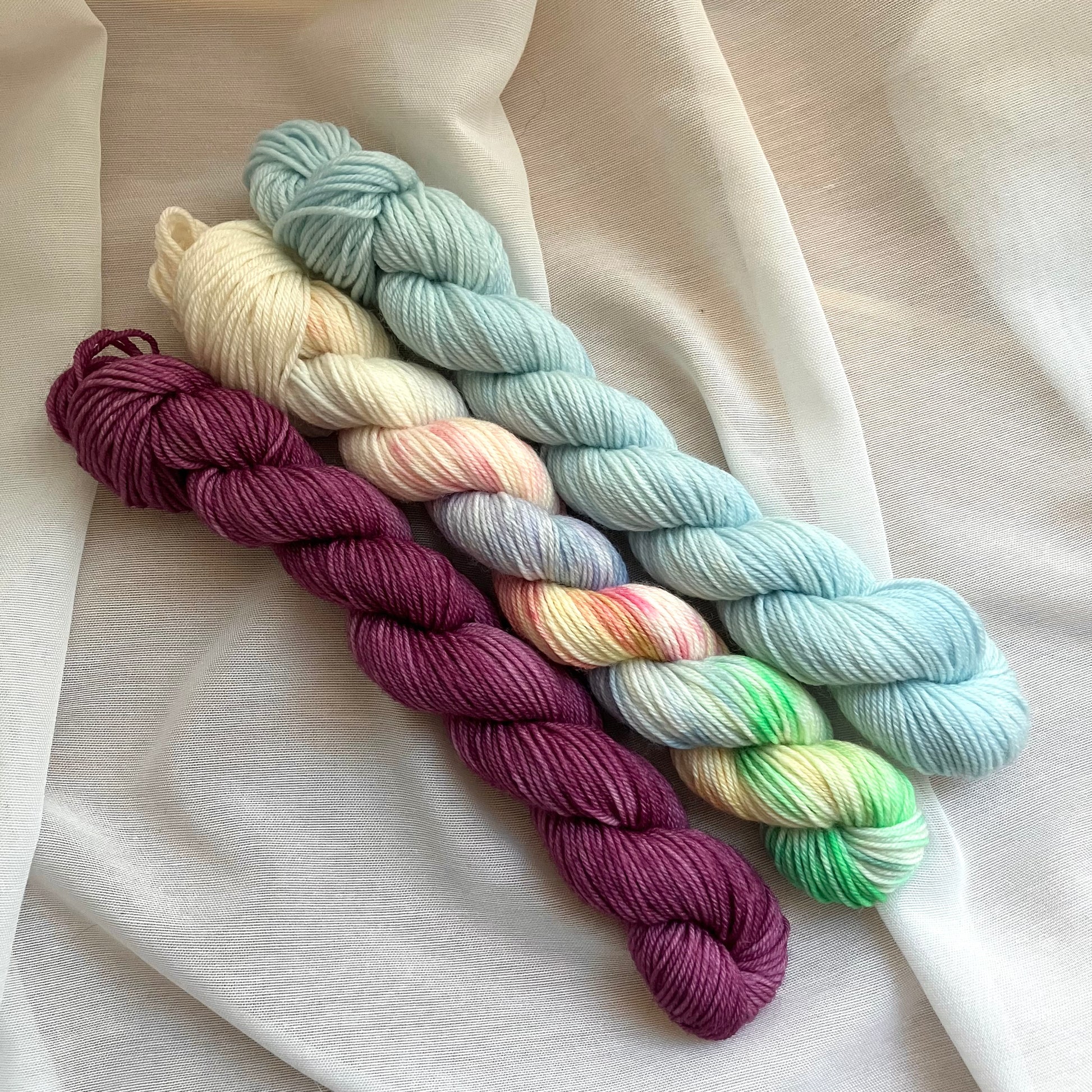 Da dette er håndfarvet garn, vil der være små forskelle mellem hvert fed, selv inden for samme parti. Det er derfor en god idé at være helt sikker på, at du køber nok garn til dit projekt med det samme.